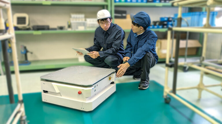 ●現場のレイアウト変更が不要●1辺60cmの本体サイズと小回りの利く動きで、狭い通路でも走行可能●現場のパソコンで使える操作ソフトウェアと、誰でも使えるQRコードでAMRを簡単操作●本体価格のみで1台から導入でき、スモールスタートできます。